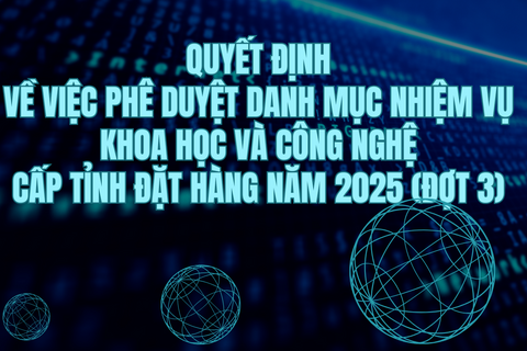 Quyết định về việc phê duyệt danh mục nhiệm vụ khoa học và công nghệ cấp tỉnh đặt hàng năm 2025 (đợt 3) Sở Khoa học và Công nghệ