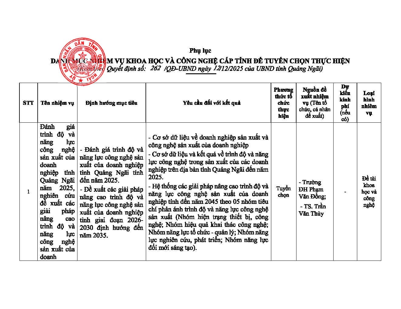 Quyết định về việc phê duyệt danh mục nhiệm vụ khoa học và công nghệ cấp tỉnh đặt hàng năm 2025 (đợt 2)