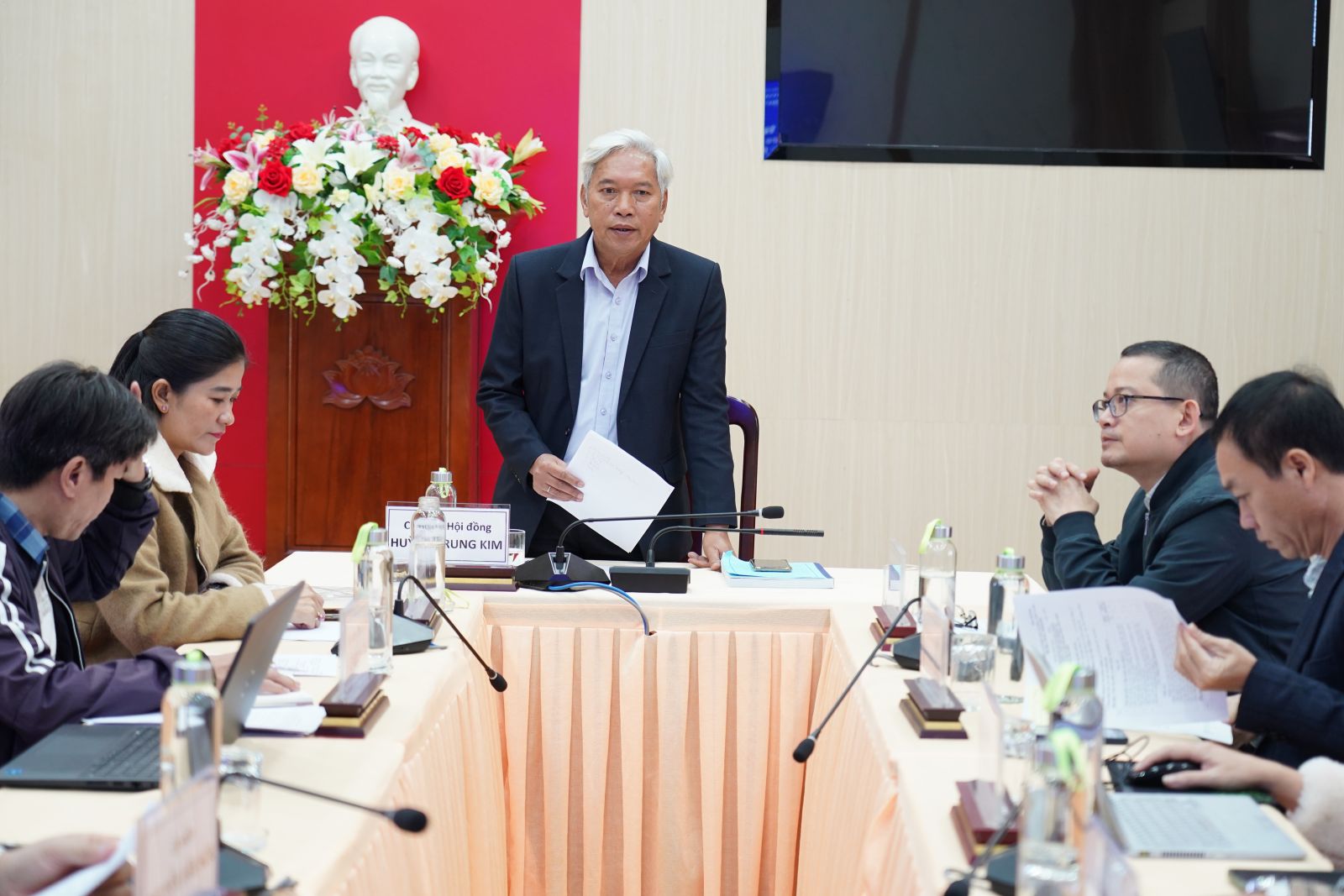 Thành viên Hội đồng trao đổi, thảo luận tại buổi làm việc.