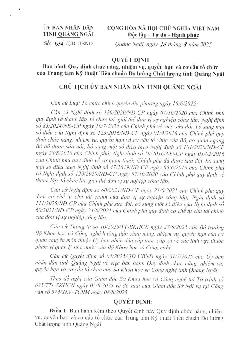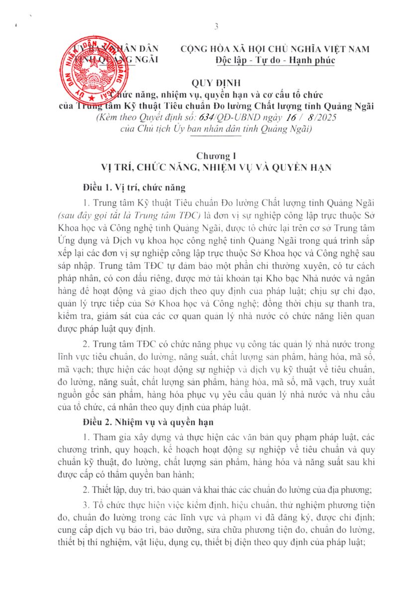 BAN HÀNH CHỨC NĂNG, NHIỆM VỤ, QUYỀN HẠN VÀ CƠ CẤU TỔ CHỨC CỦA TTKTĐLCL