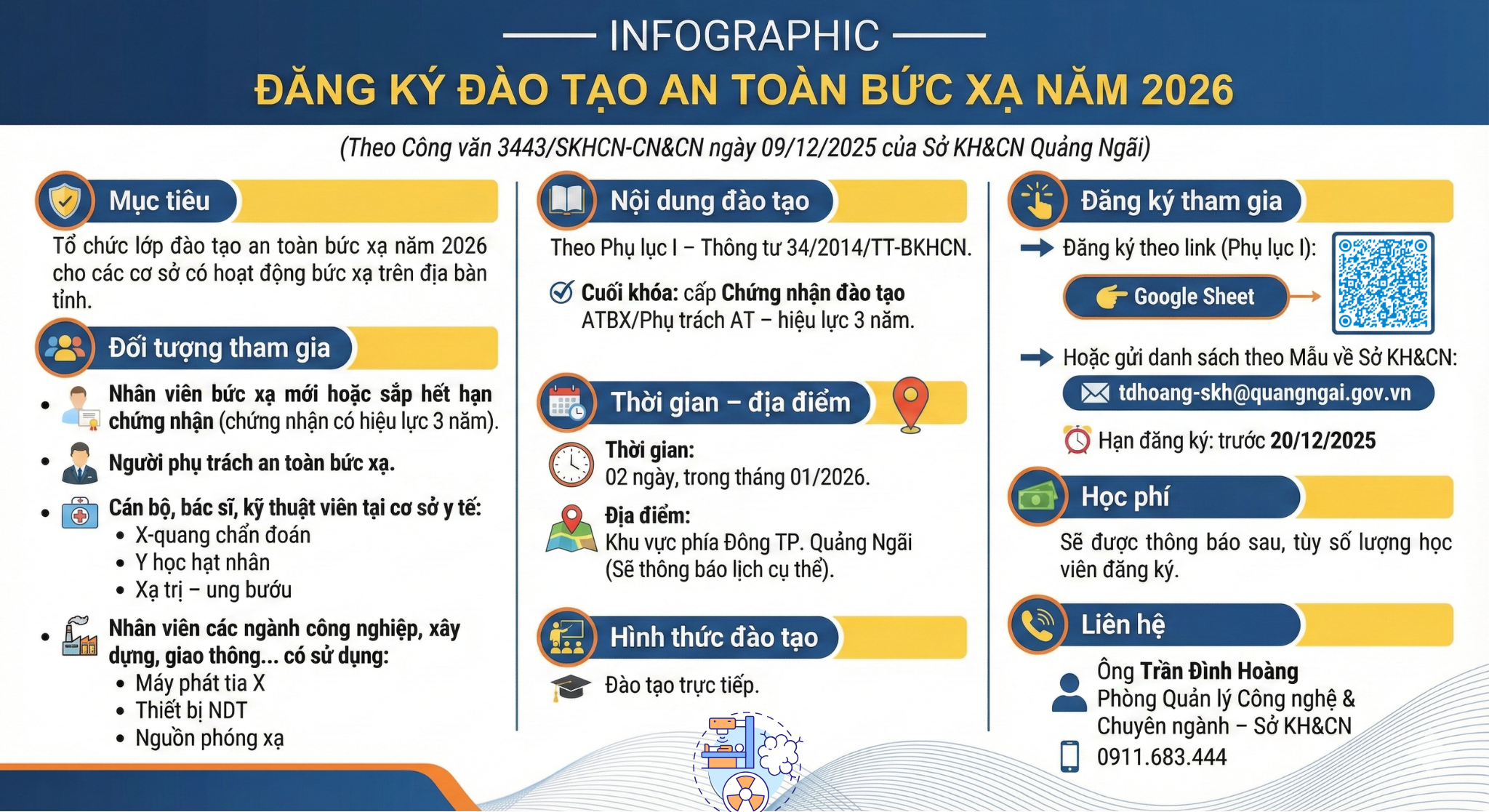 Thứ năm, 11/12/2025 | 14:57 A- A A+ | INF0GRAPHIC: Đăng ký tham gia đào tạo an toàn bức xạ đối với nhân viên bức xạ và người phụ trách an toàn 11/12/2025, 14:57 |