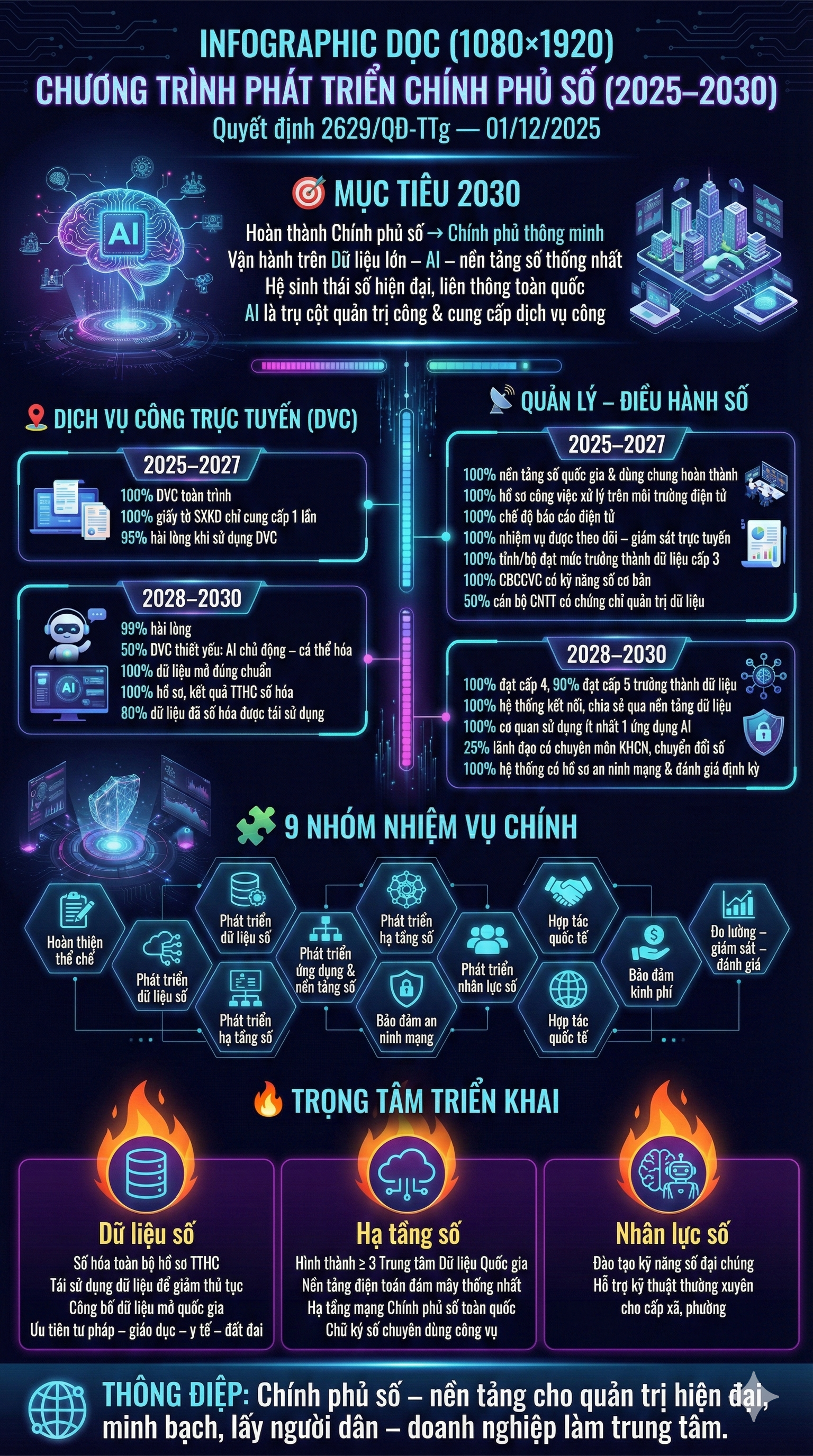 Thứ năm, 11/12/2025 | 15:19 A- A A+ | INFOGRAPHIC: CHƯƠNG TRÌNH PHÁT TRIỂN CHÍNH PHỦ SỐ (2025–2030) Quyết định 2629/QĐ-TTg — 01/12/2025 11/12/2025, 15:19 |