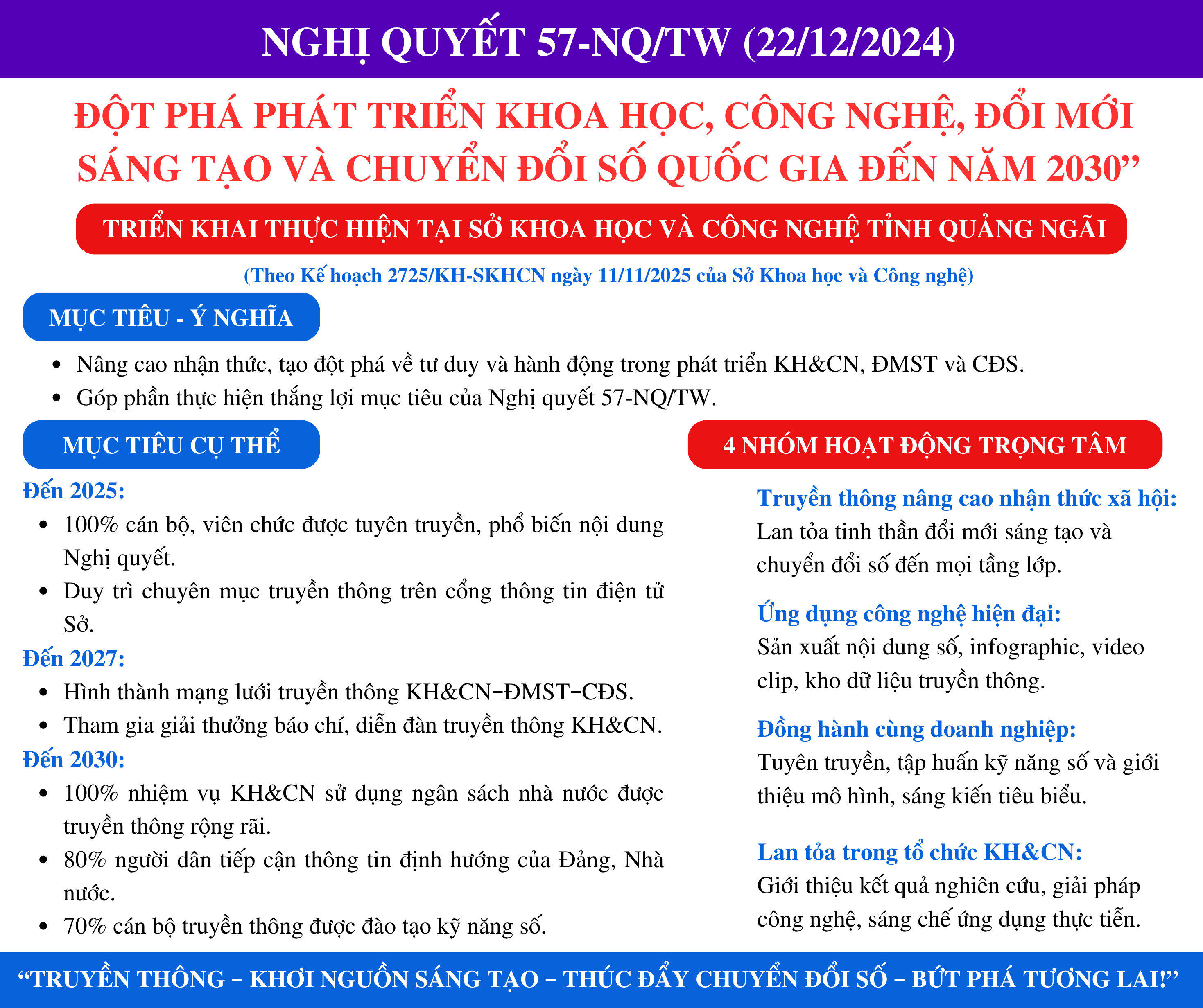 Thứ tư, 12/11/2025 | 11:12 A- A A+ | Infographic tuyên truyền: Đẩy mạnh truyền thông thực hiện Nghị quyết số 57-NQ/TW của Bộ Chính trị 12/11/2025, 11:12 |