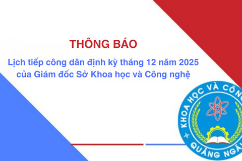 Thông báo lịch tiếp công dân định kỳ tháng 12 năm 2025 của Giám đốc Sở Khoa học và Công nghệ