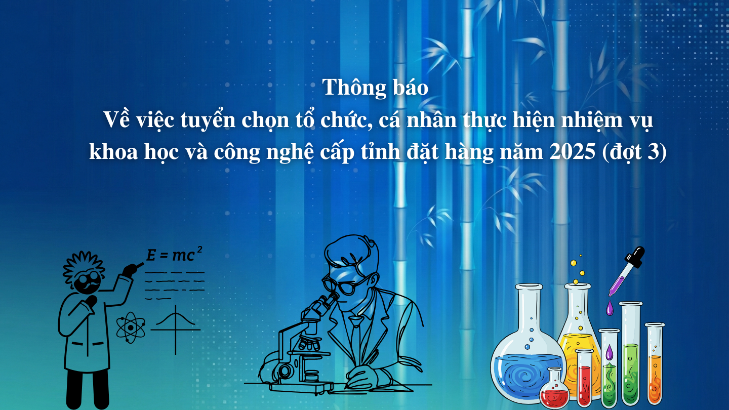 Thông báo về việc tuyển chọn tổ chức, cá nhân thực hiện nhiệm vụ khoa học và công nghệ cấp tỉnh đặt hàng năm 2025 (đợt 3)