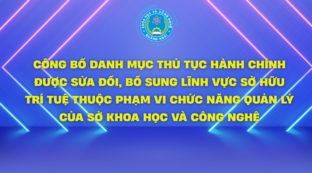 Công bố Danh mục thủ tục hành chính được sửa đổi, bổ sung lĩnh vực Sở hữu trí tuệ thuộc phạm vi chức năng quản lý của Sở Khoa học và Công nghệ theo Quyết định số 1118/QĐ-UBND ngày 26/09/2025 của Ủy ban nhân dân tỉnh Quảng Ngãi.
