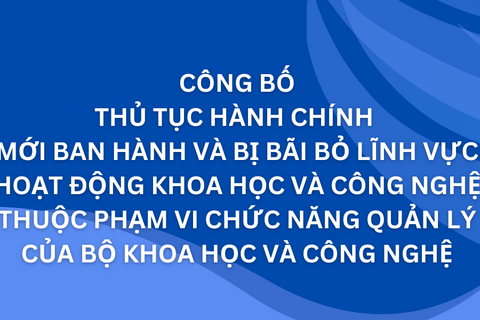 Công bố Danh mục thủ tục hành chính mới ban hành trong lĩnh vực hoạt động khoa học và công nghệ thuộc thẩm quyền giải quyết của Sở Khoa học và Công nghệ, các cơ quan, đơn vị quản lý nhiệm vụ khoa học và công nghệ cấp cơ sở sử dụng ngân sách nhà nước trên địa bàn tỉnh Quảng Ngãi