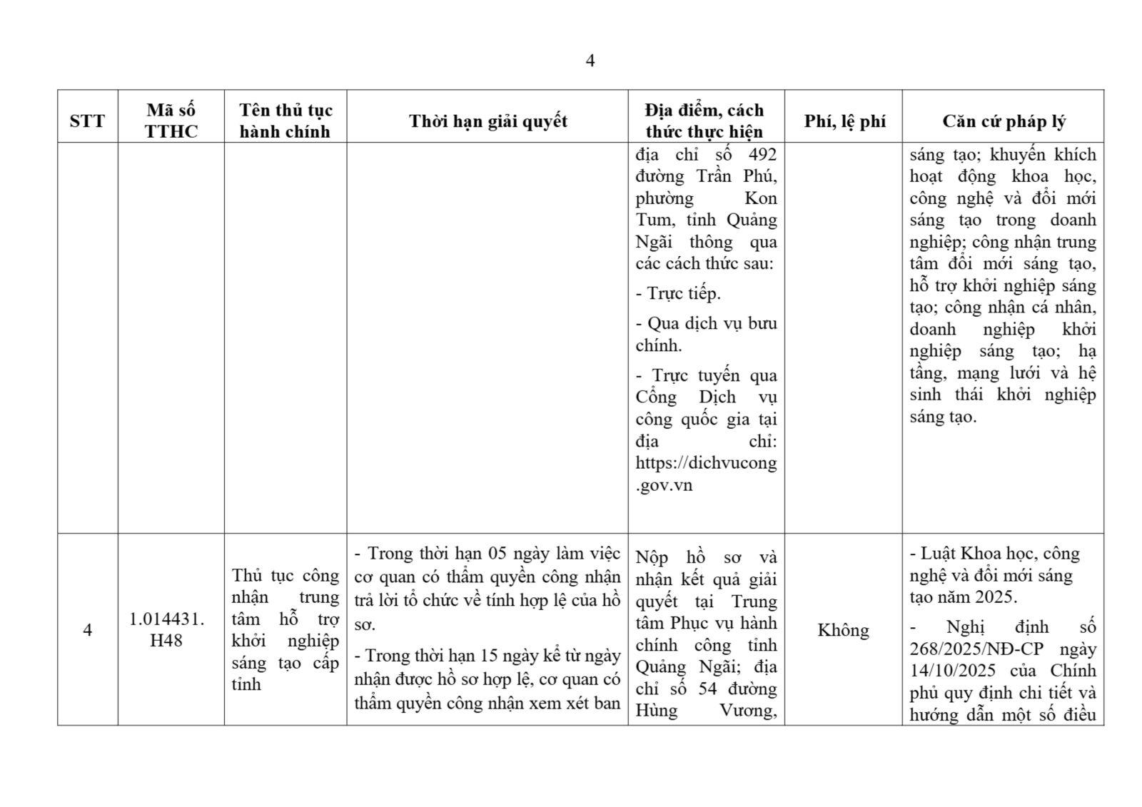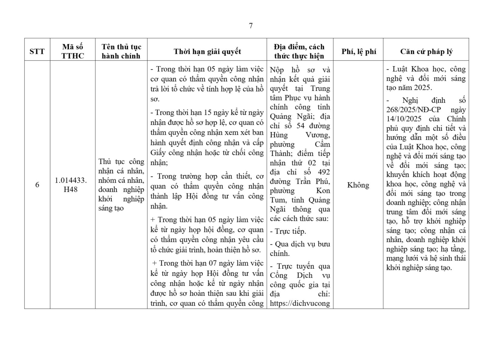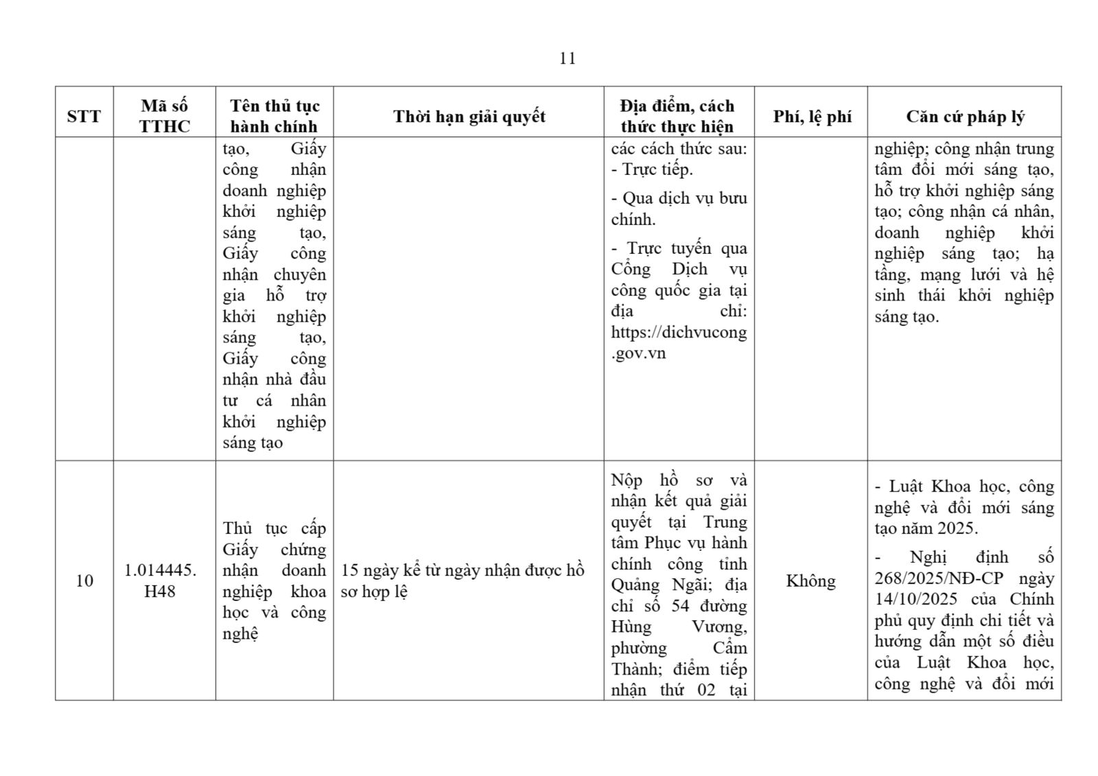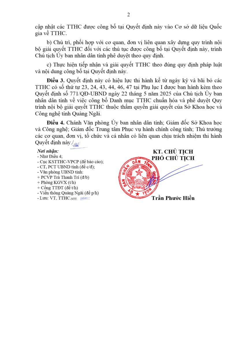 Quyết định số 1642/QĐ-UBND ngày 24/11/2025 của Chủ tịch UBND tỉnh Quảng Ngãi về việc Công bố Danh mục thủ tục hành chính mới ban hành và bị bãi bỏ trong lĩnh vực hoạt động khoa học và công nghệ thuộc phạm vi chức năng quản lý của Sở Khoa học và Công nghệ