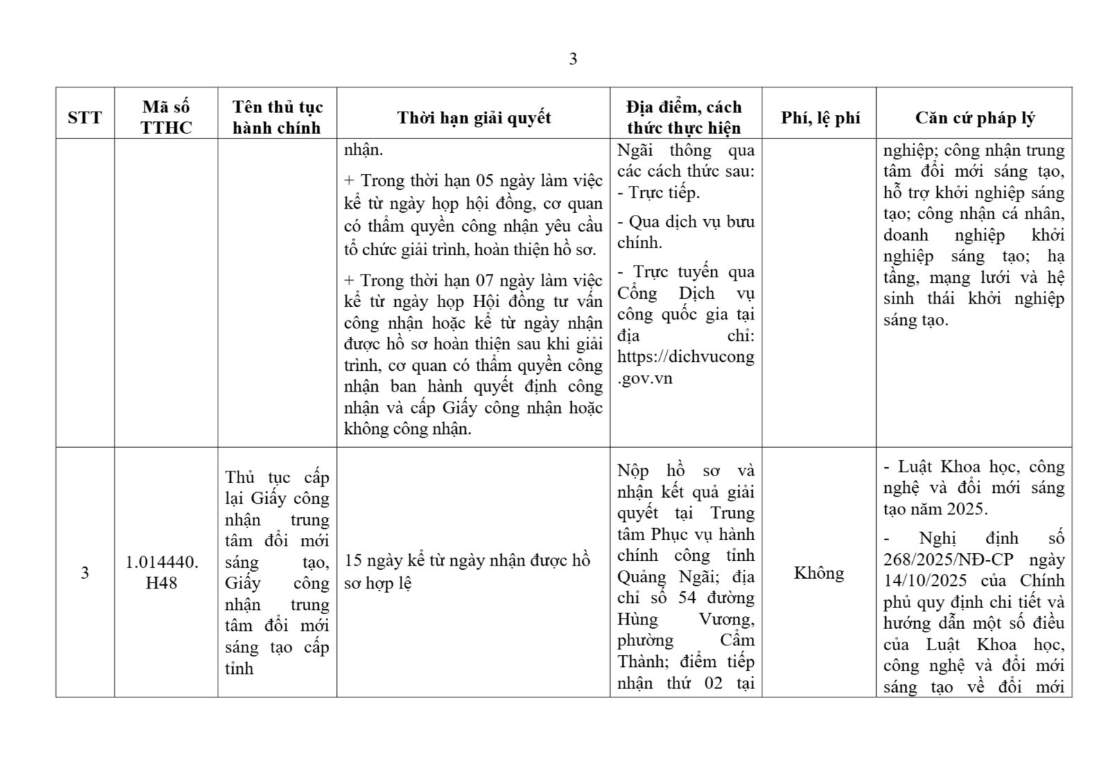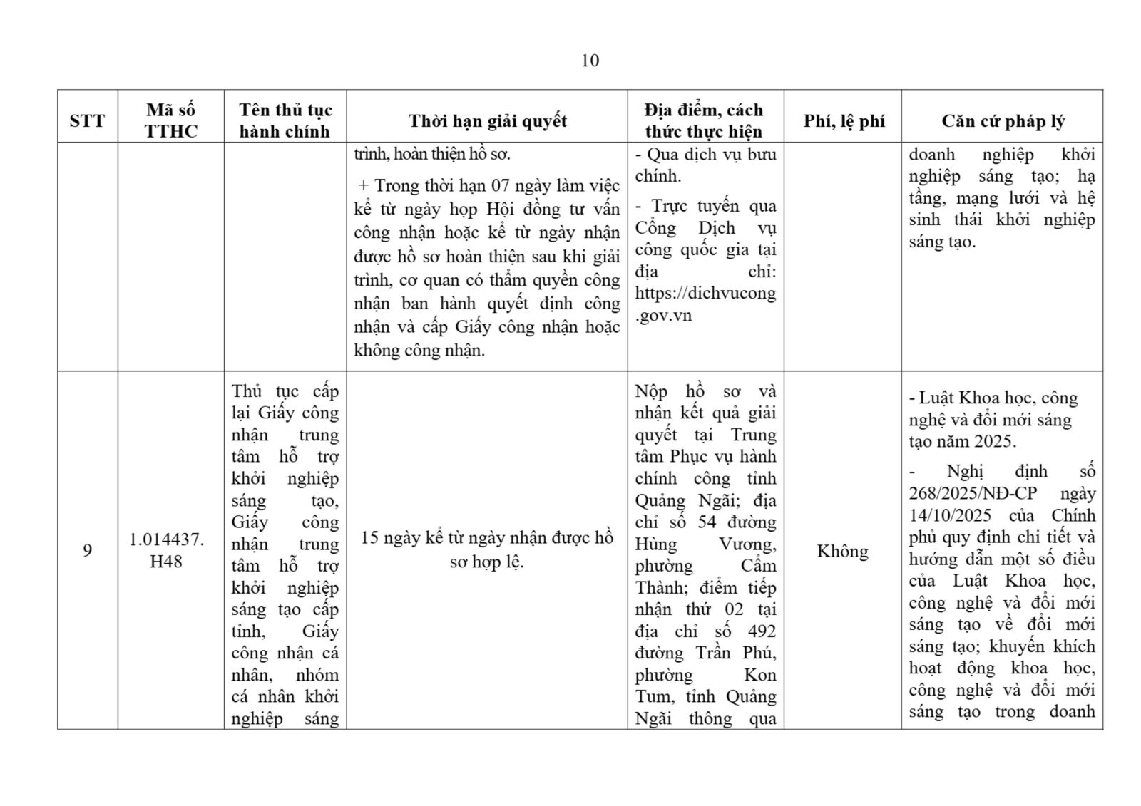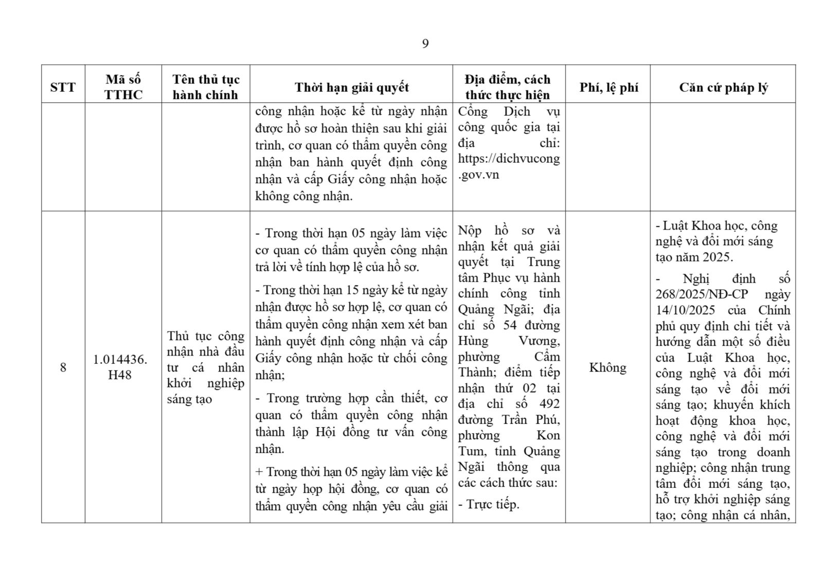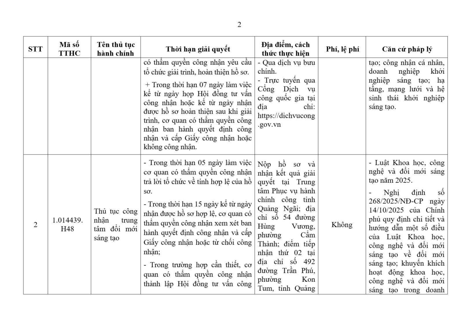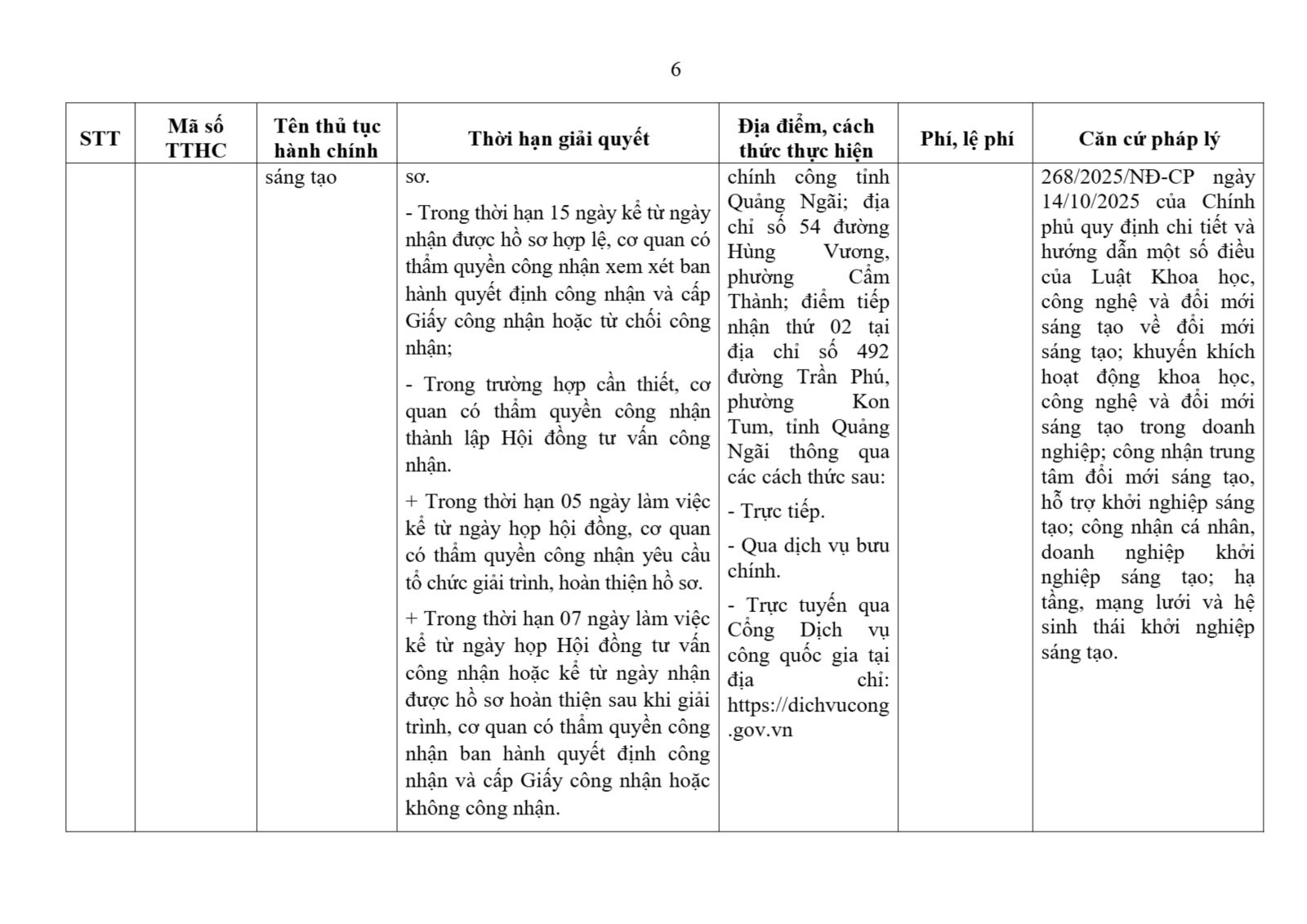 Quyết định số 1642/QĐ-UBND ngày 24/11/2025 của Chủ tịch UBND tỉnh Quảng Ngãi về việc Công bố Danh mục thủ tục hành chính mới ban hành và bị bãi bỏ trong lĩnh vực hoạt động khoa học và công nghệ thuộc phạm vi chức năng quản lý của Sở Khoa học và Công nghệ