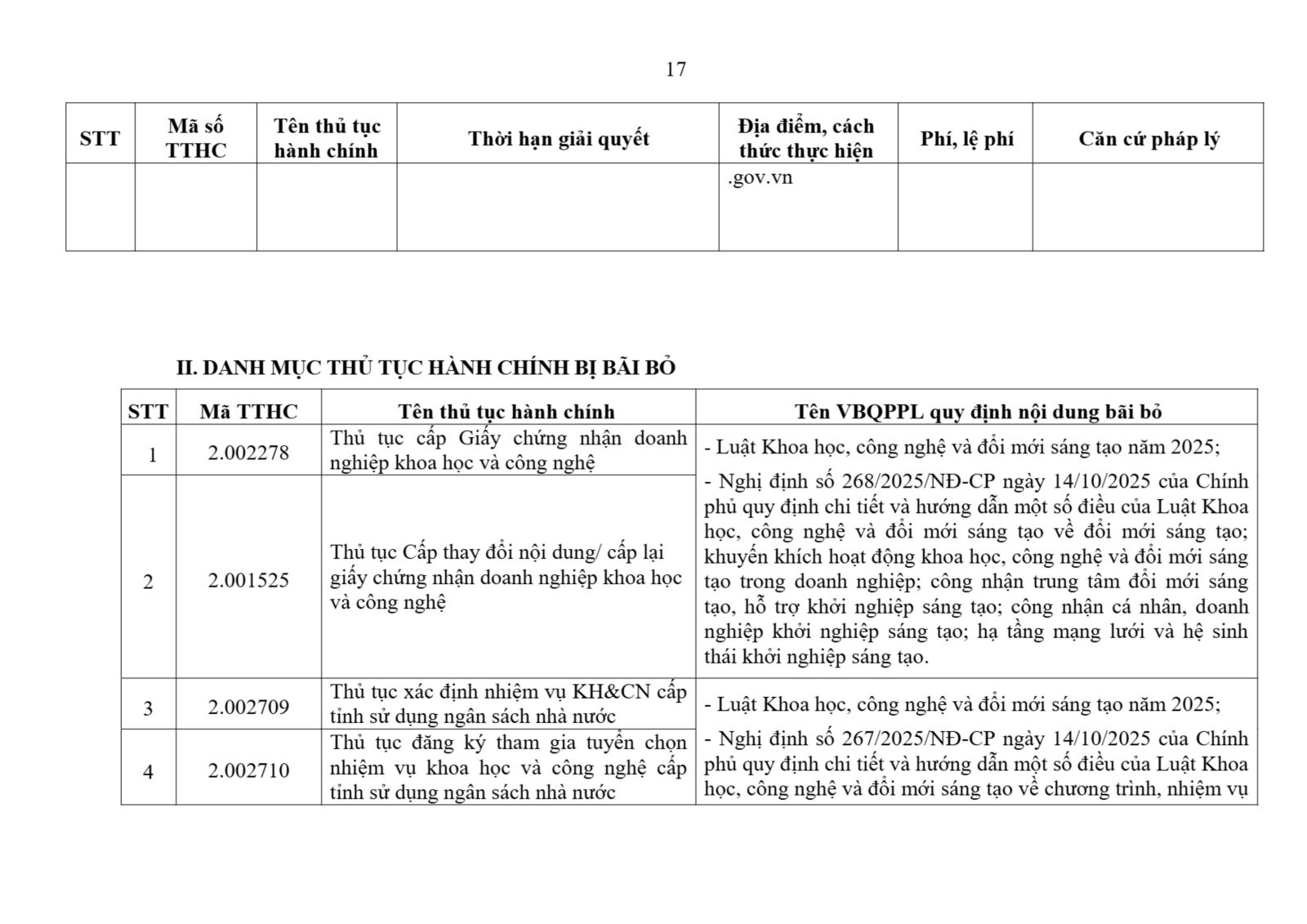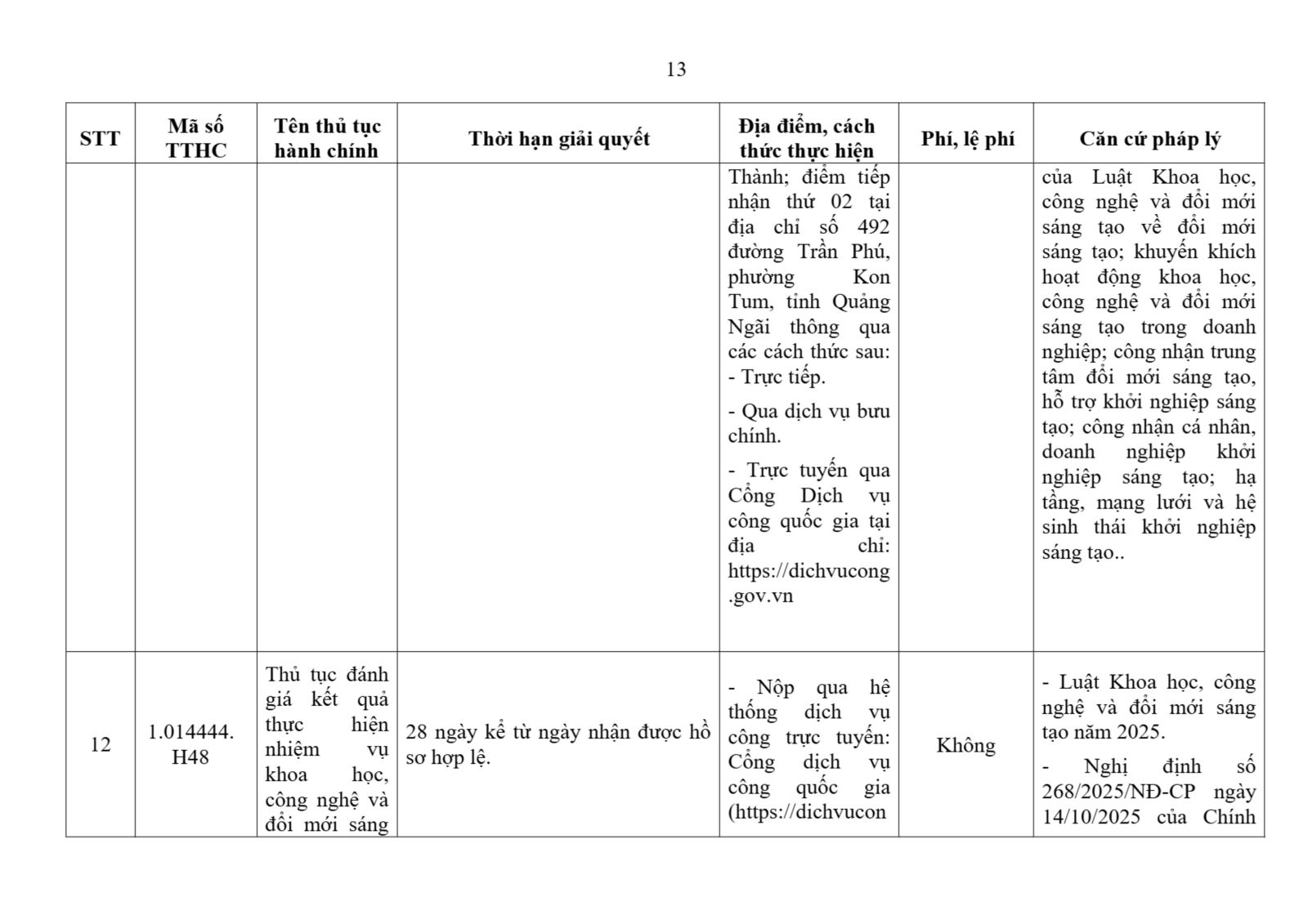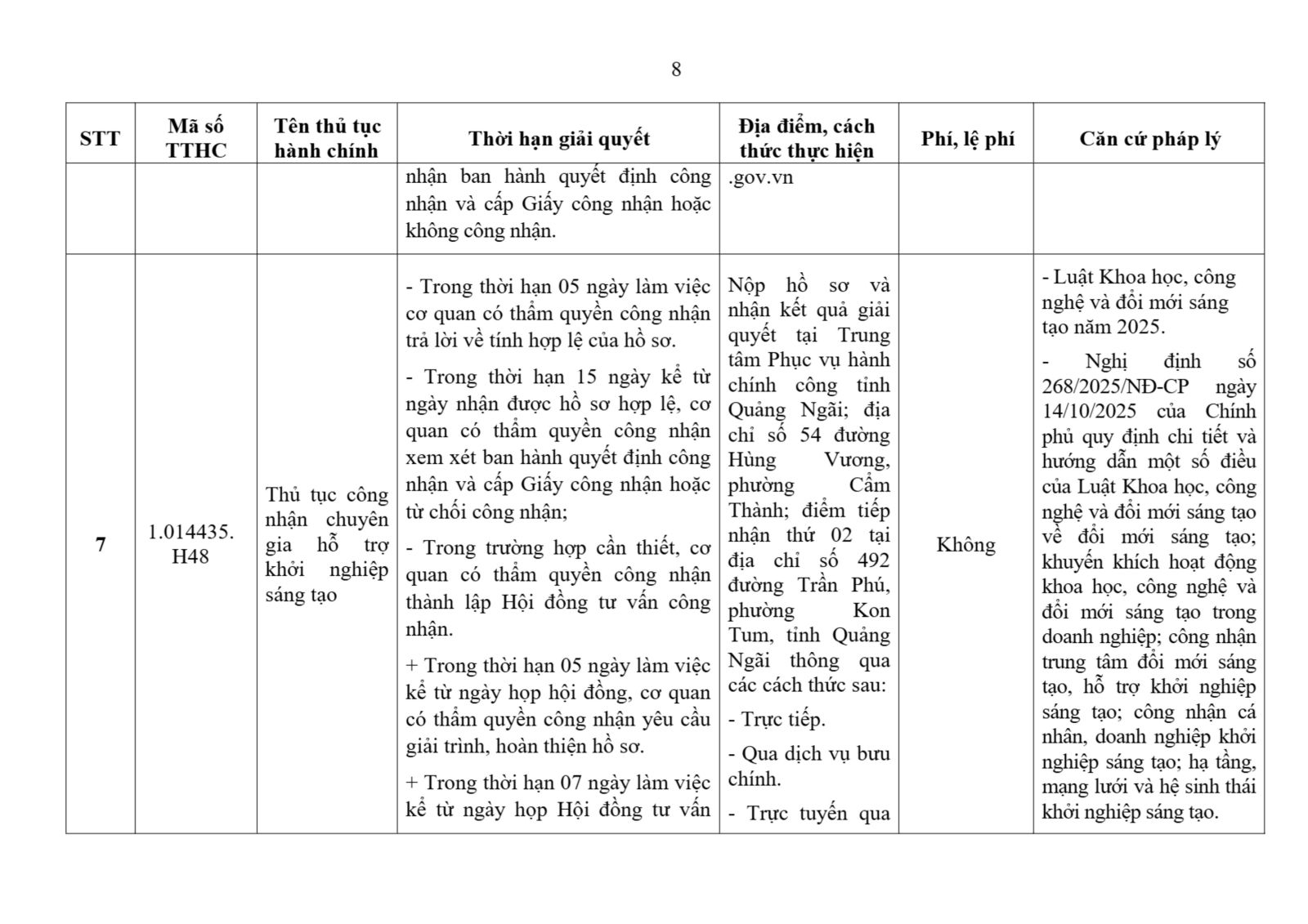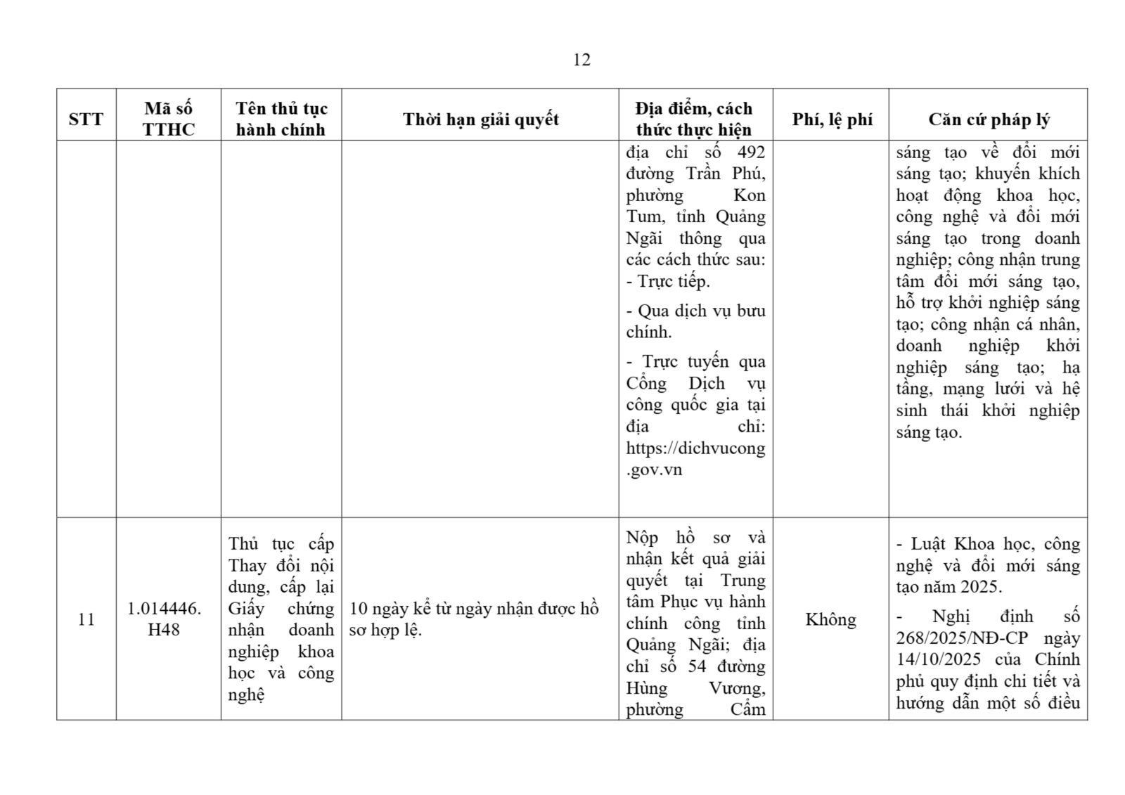 Quyết định số 1642/QĐ-UBND ngày 24/11/2025 của Chủ tịch UBND tỉnh Quảng Ngãi về việc Công bố Danh mục thủ tục hành chính mới ban hành và bị bãi bỏ trong lĩnh vực hoạt động khoa học và công nghệ thuộc phạm vi chức năng quản lý của Sở Khoa học và Công nghệ