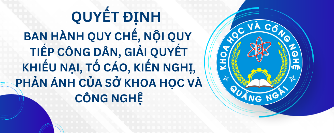 Quyết định Ban hành Quy chế, Nội quy tiếp công dân, giải quyết khiếu nại, tố cáo, kiến nghị, phản ánh của Sở Khoa học và Công nghệ tỉnh Quảng Ngãi.