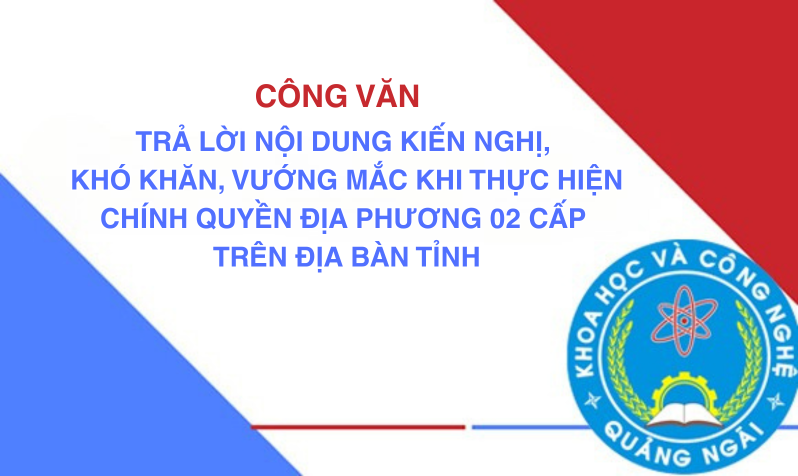 Theo đề nghị của Sở Nội vụ tại Công văn số 2956/SNV-XDCQ ngày 10/12/2025 về việc tiếp tục hỗ trợ các địa phương tháo gỡ khó khăn, vướng mắc khi thực hiện chính quyền địa phương 02 cấp trên địa bàn tỉnh; Sở Khoa học và Công nghệ phúc đáp nội dung kiến nghị, khó khăn, vướng mắc của các địa phương thuộc chức năng, nhiệm vụ của Sở, cụ thể như sau: