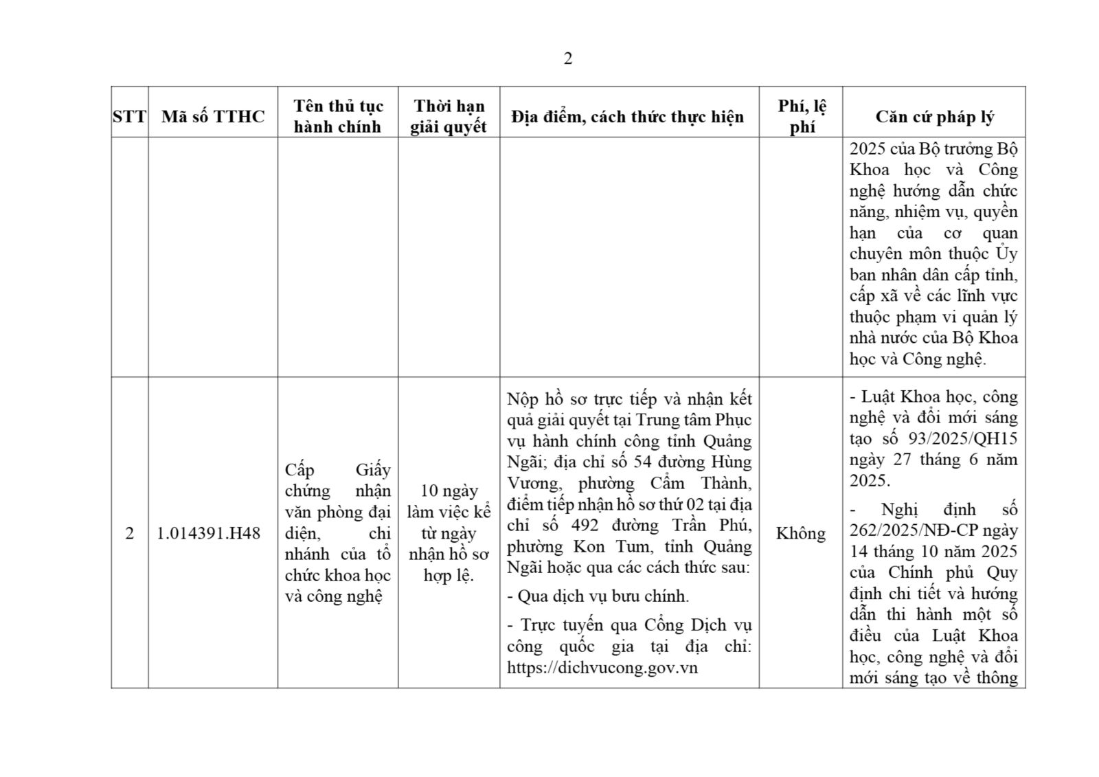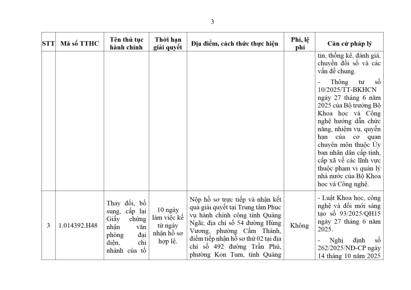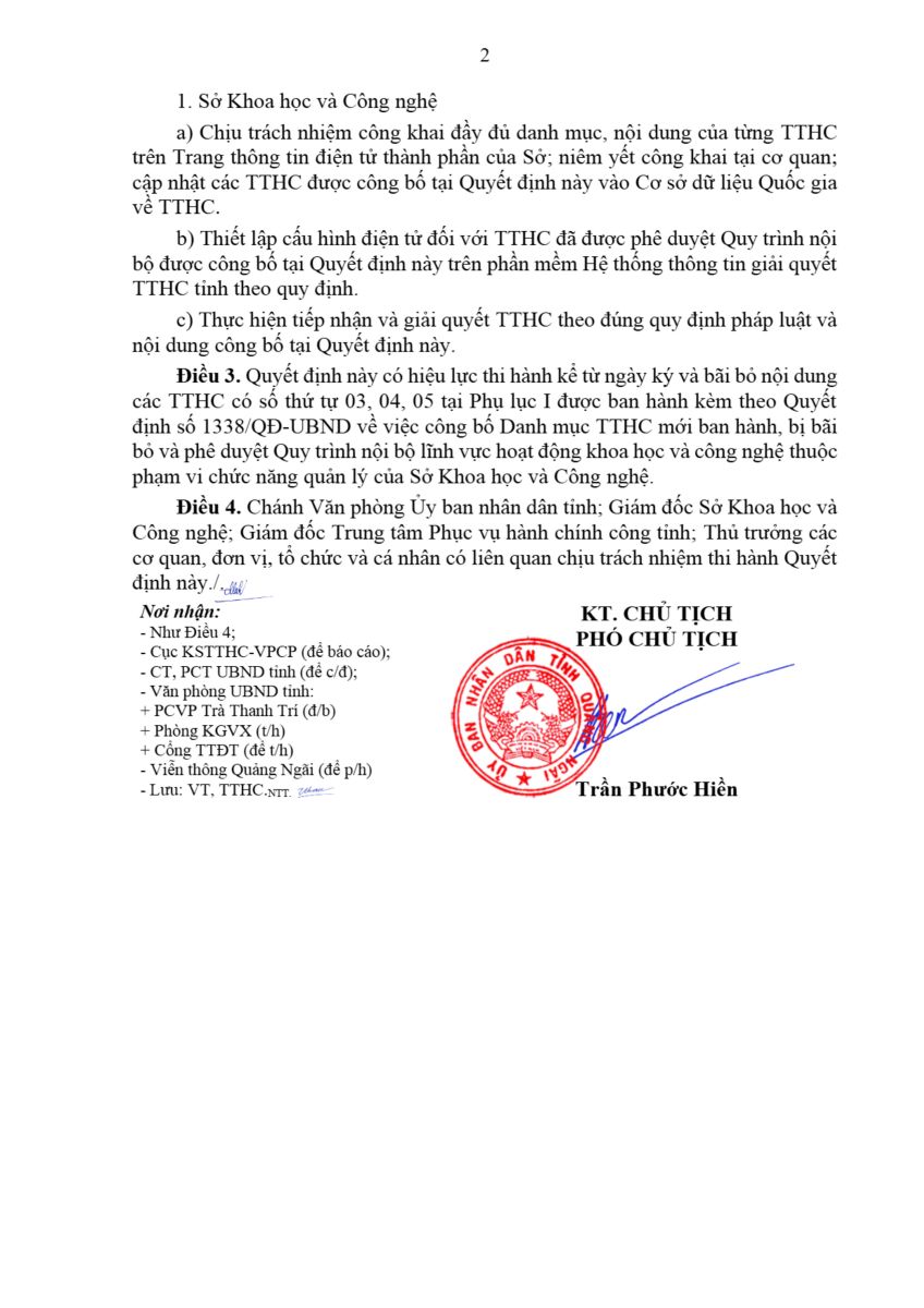 Quyết định số 1667/QĐ-UBND ngày 27/11/2025 của Chủ tịch UBND tỉnh Quảng Ngãi về việc công bố Danh mục thủ tục hành chính được sửa đổi, bổ sung và phê duyệt Quy trình nội bộ giải quyết thủ tục hành chính lĩnh vực hoạt động khoa học và công nghệ thuộc phạm vi chức năng quản lý của Sở Khoa học và Công nghệ